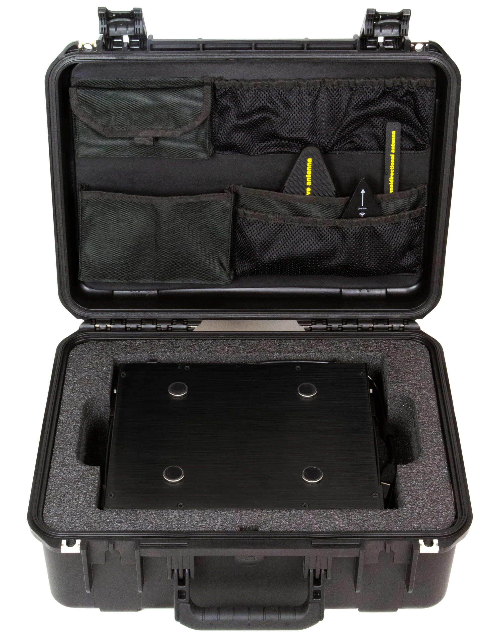 - Side handles are used for carrying while all antennas are fixed to the main unit.