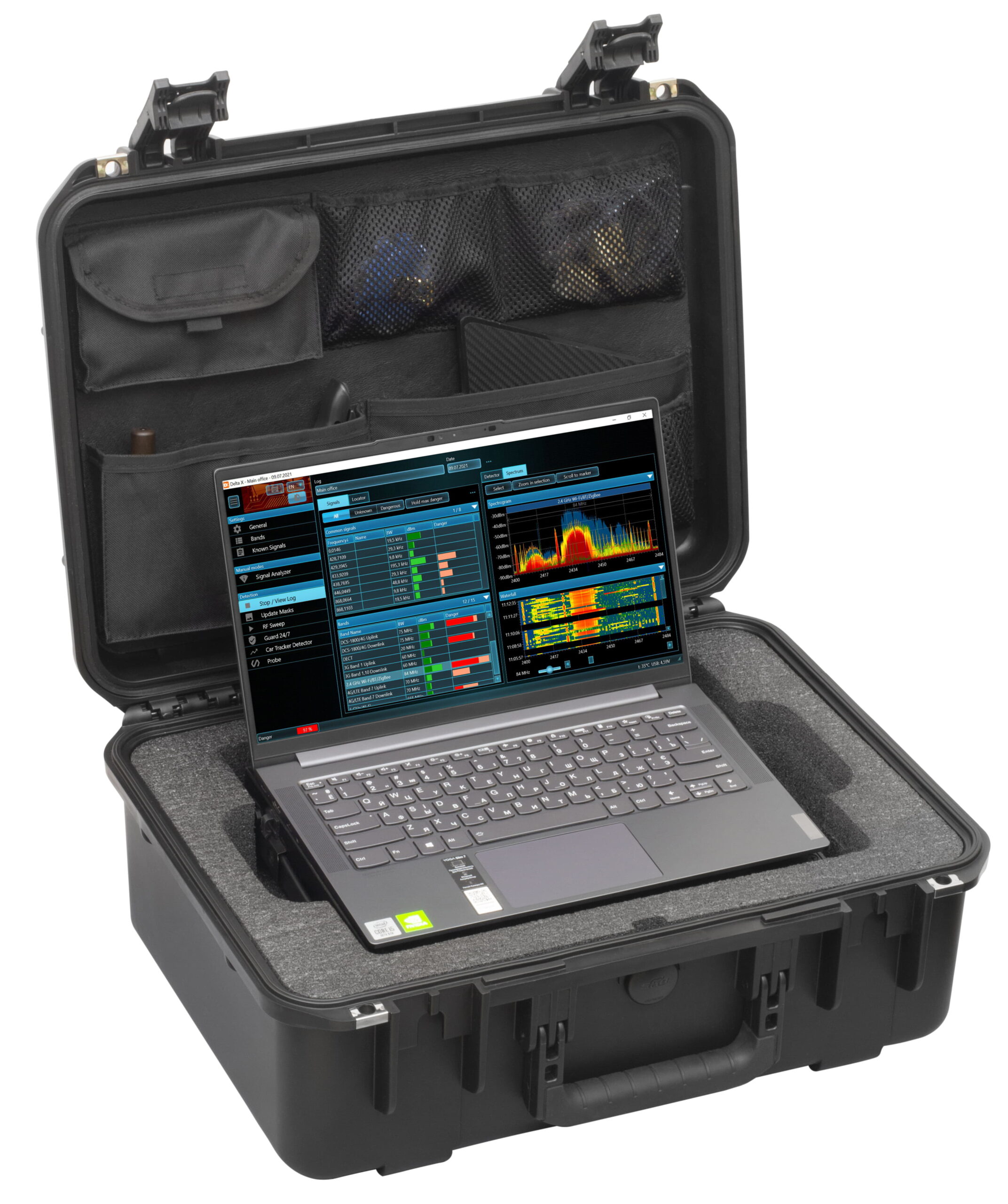 - Spectral analysis provides high sensitivity and a long detection distance, exceeding the performance of typical RF detectors and near-field receivers by 10-20 times.